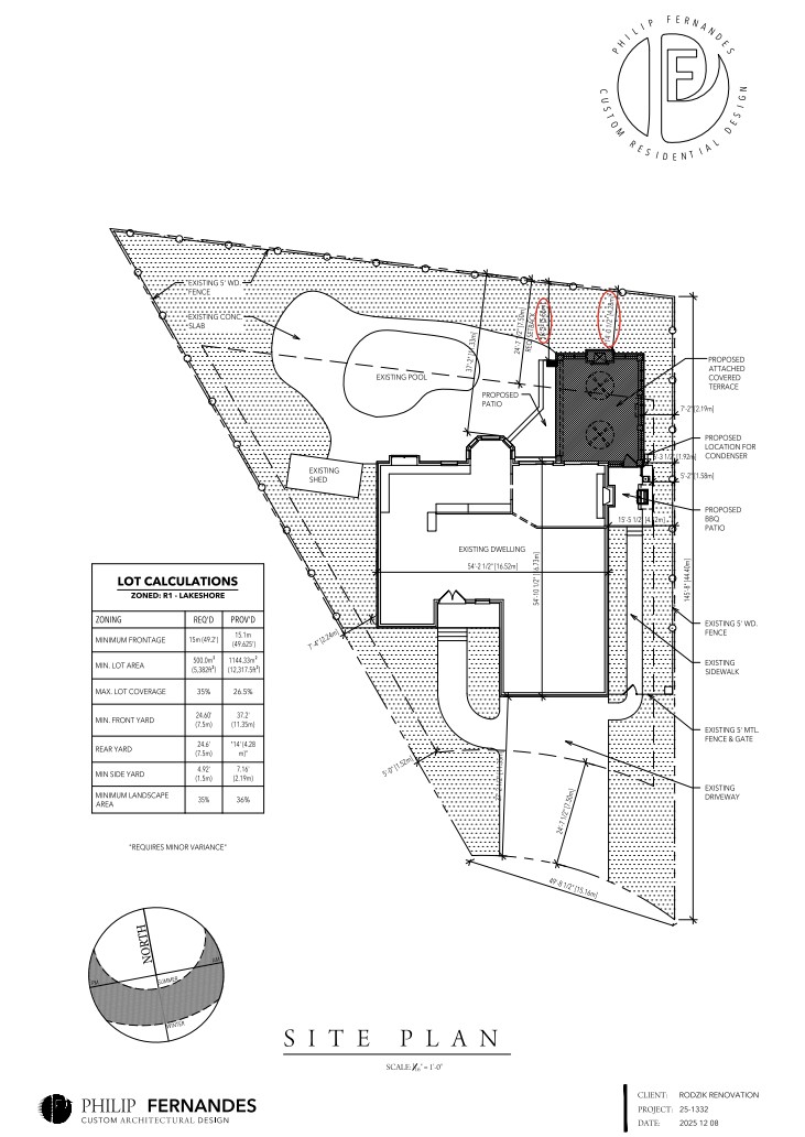 Relief from Subsection 8.1 to permit the covered terrace to have a minimum rear yard setback of 4.2 metres (13.7 feet), whereas the minimum rear yard setback required in the Residential – Low Density (R1) zone is 7.5 metres (24.6 feet);