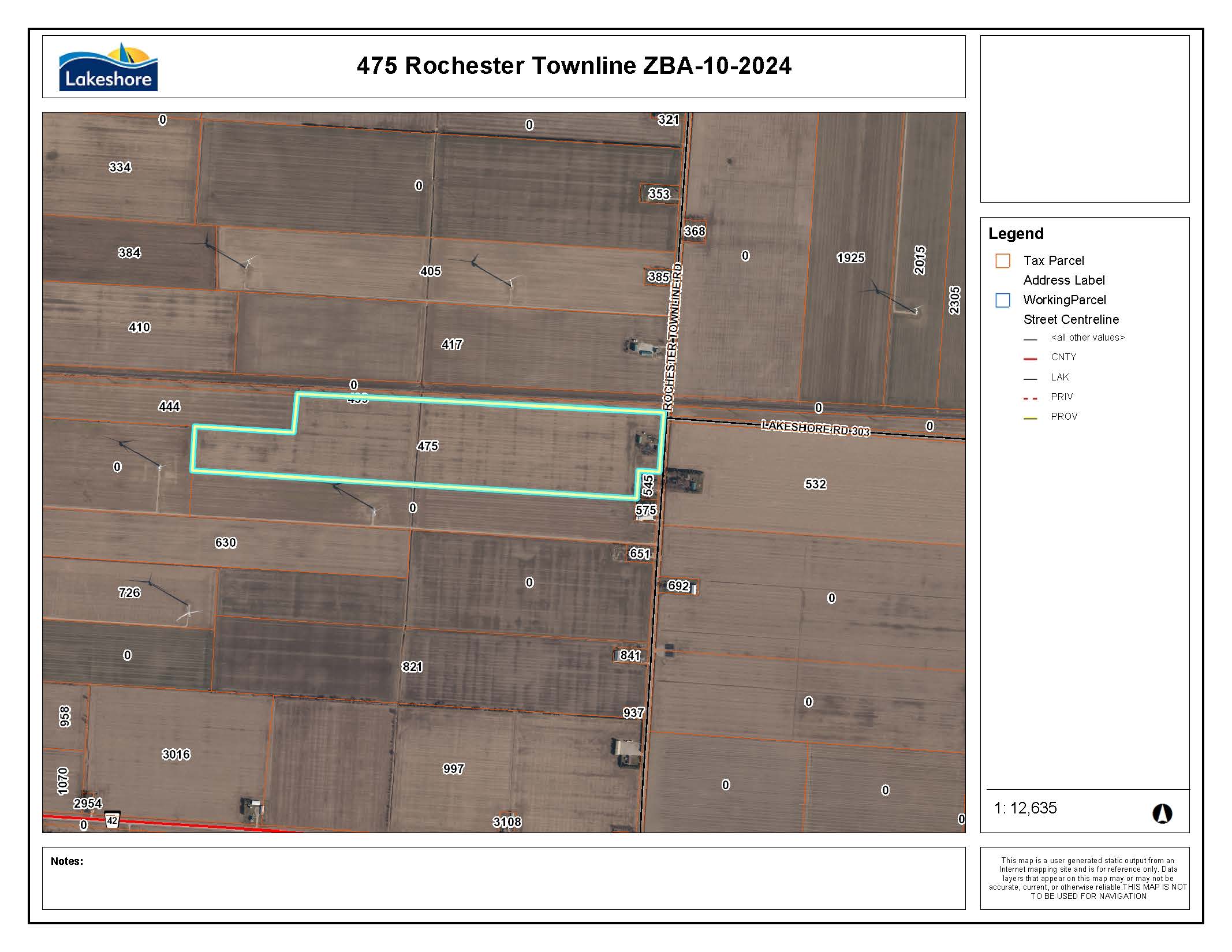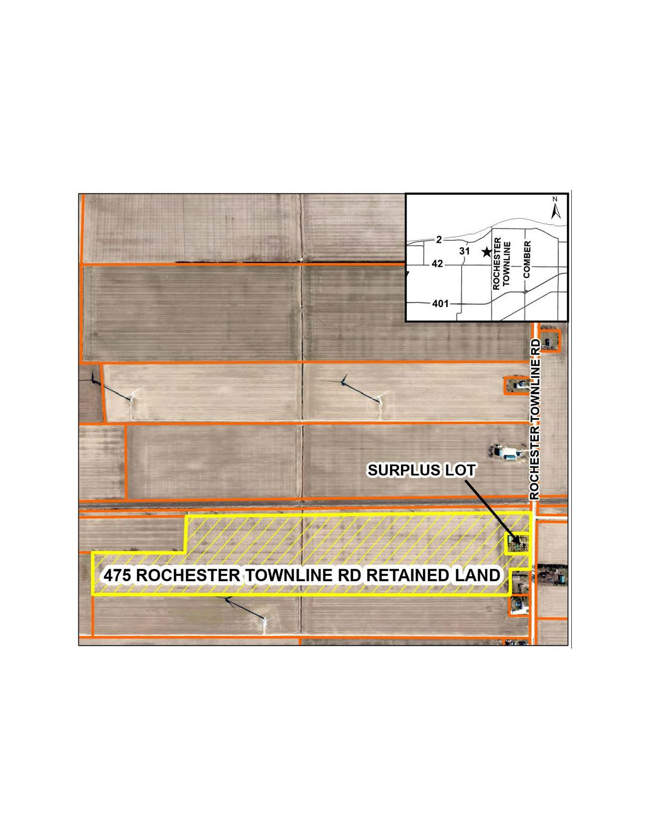 As a condition of the provisional consent, the applicant is applying to rezone the retained farmland parcel to prohibit residential dwellings on the retained farmland parcel, as required in the Lakeshore Official Plan and Provincial Policy Statement. Attached to this notice is an aerial photo of 475 Rochester Townline Road. Also attached is a map detailing the surplus lot (lot to be severed), and the retained farmland parcel that is subject