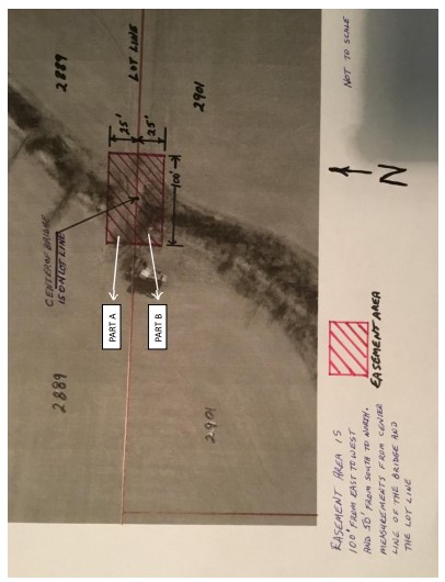 There is a municipal drain that runs through both farm properties. There is an existing bridge that provides access over the municipal drain located on or near the mutual property line of both farm properties. The easement will allow each landowner to utilize the bridge and access a portion of each other’s land so that each landowner can access their farm property on both sides of the municipal drain.