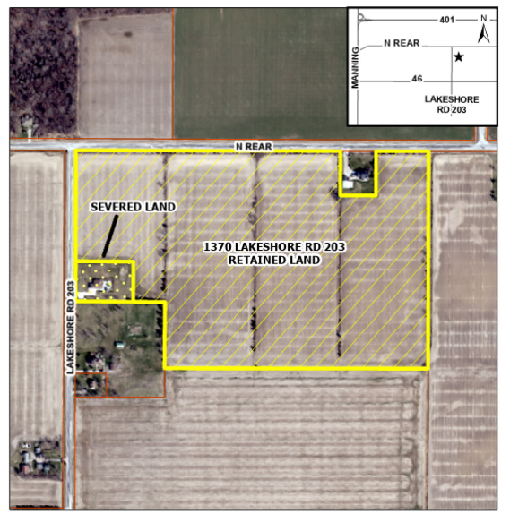 Purpose: A provisional consent (file: B-09-2024) was granted from the Lakeshore Committee of Adjustment to sever an existing dwelling and its accessory uses from the Subject Property as a separate residential lot. The dwelling is considered surplus to a farming operation.