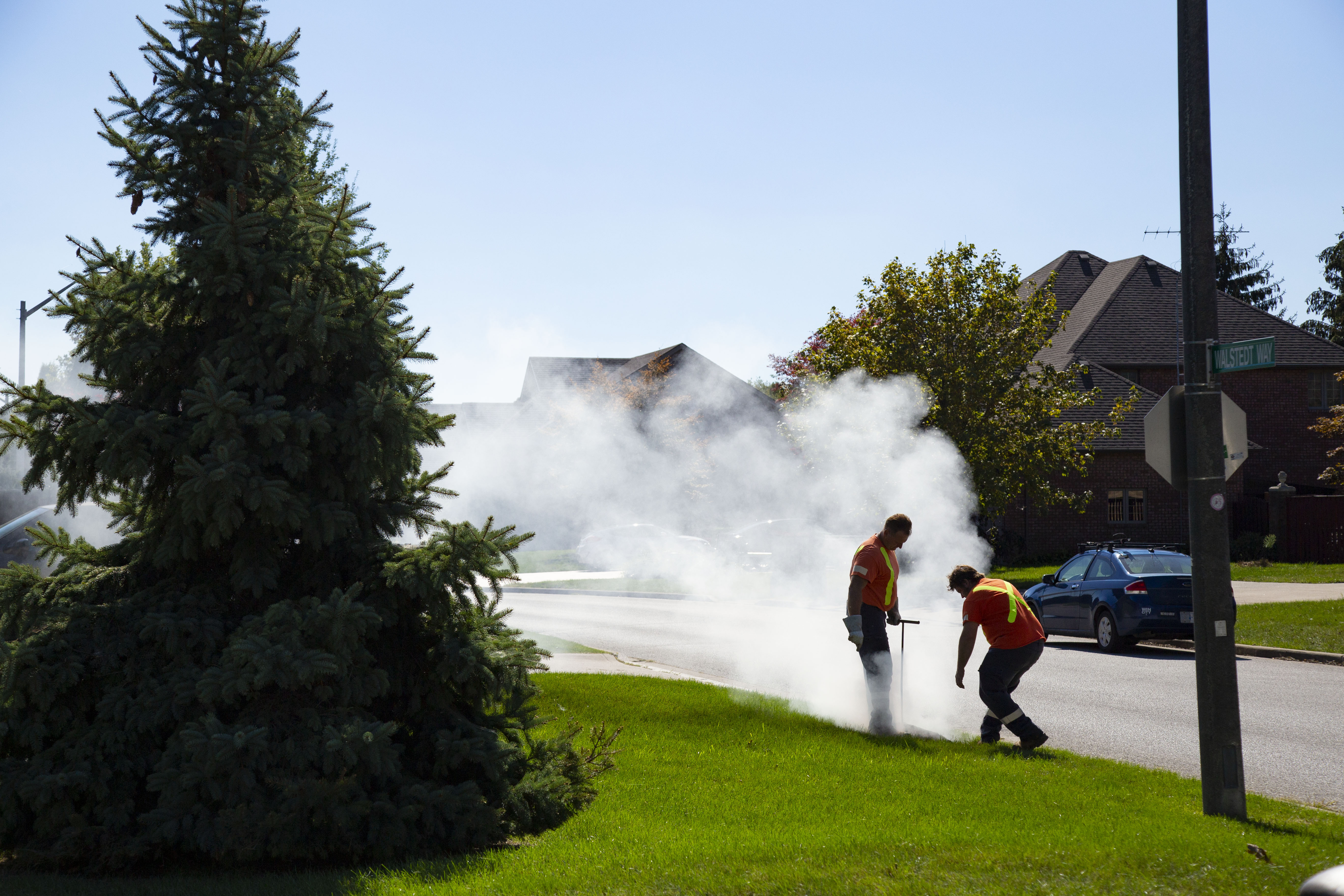 Smoke testing uses a white, non-toxic vapour to identify potential cracks, gaps, and connections where inflow and infiltration (I&I) of rainwater or groundwater is entering the sanitary sewer system. Identifying and repairing I&I sources, in both public and private infrastructure systems, is part of ongoing efforts to reduce sanitary wastewater treatment costs and basement flooding in Lakeshore.